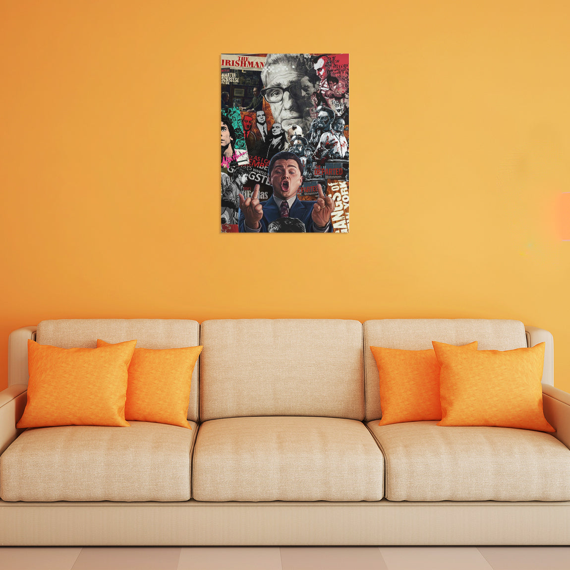 A dynamic collage poster featuring scenes and characters from Scorsese classics.