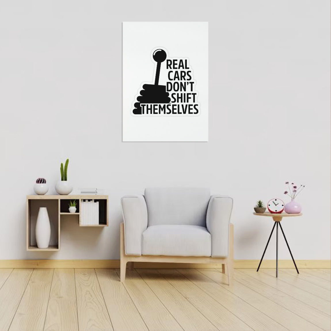 High-contrast silhouette and crisp typography celebrate manual-transmission enthusiasts with a bold statement.