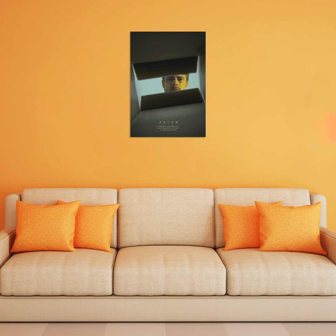 A minimalist poster featuring the unforgettable “What’s in the box?” scene.