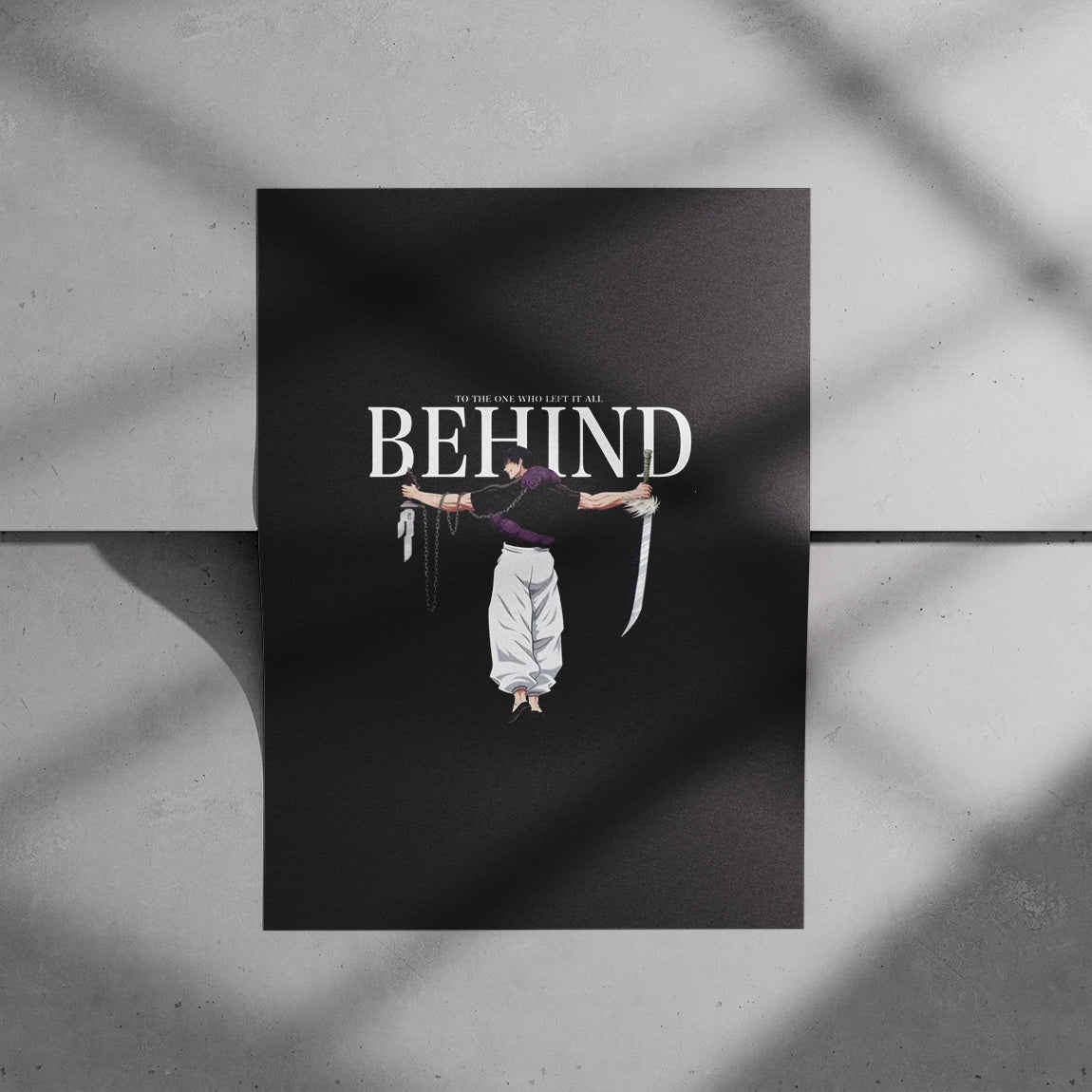 A striking minimalist poster with a lone warrior and the phrase “To the one who left it all behind.” White background for a bright, clean look.